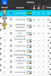 Como cierre de esta destacada temporada, el equipo obtuvo el primer lugar en el 3er Torneo Regional de Natación, realizado en la ciudad de Cali, donde se enfrentaron 11 clubes y más de 220 nadadores provenientes de distintas regiones del país. La delegación caucana alcanzó un total de 69 medallas: 25 de oro, 23 de plata y 21 de bronce, consolidándose como campeón general del certamen y ratificando el crecimiento del proceso deportivo que lidera Comfacauca.