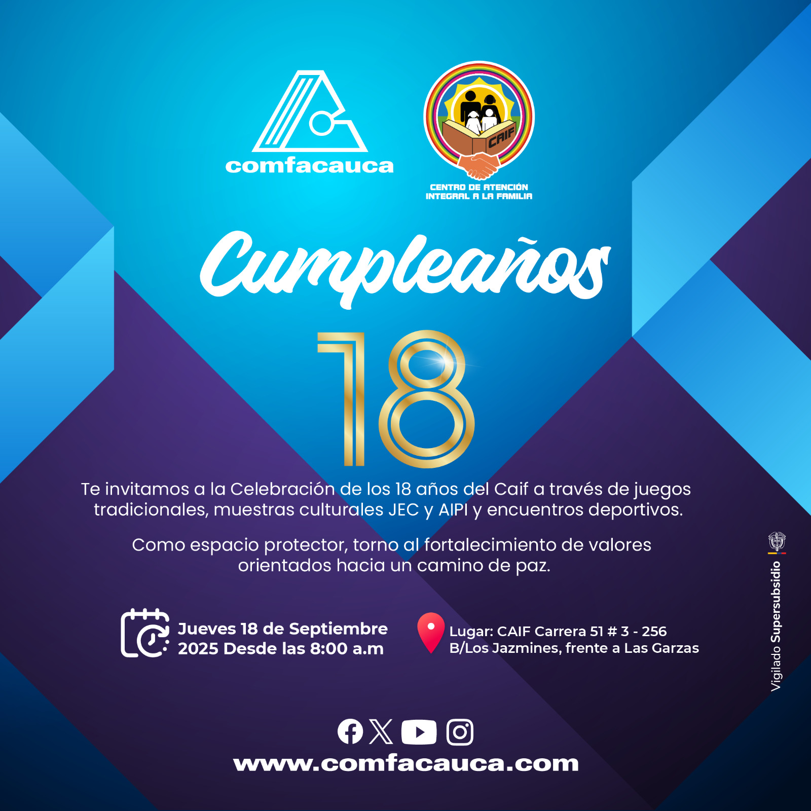 Este jueves 18 de septiembre desde las 8:00 a.m. celebramos el cumpleaños número 18 del CAIF – Centro de Atención Integral a la Familia. 💙