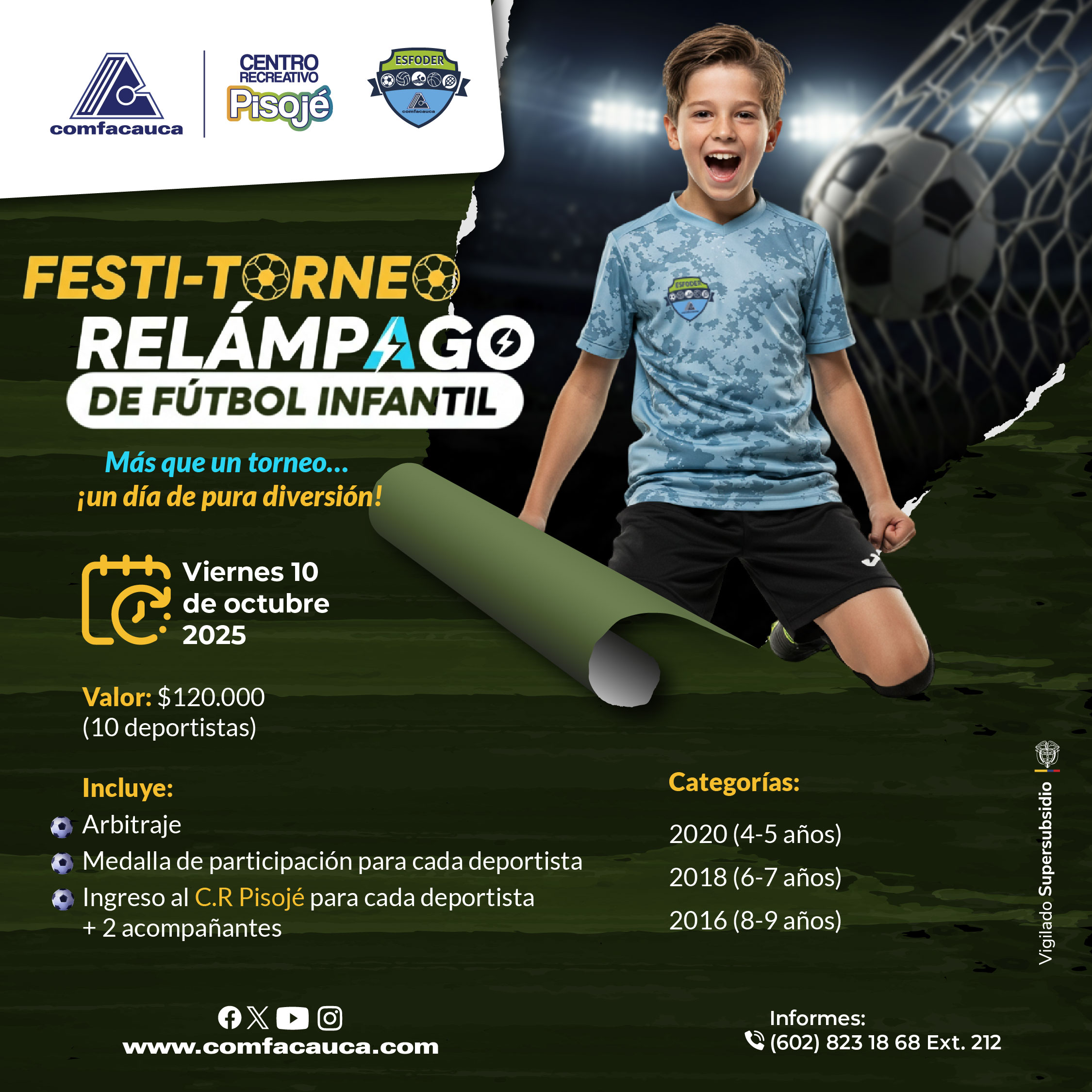 Conoce el reglamento aquí: https://www.comfacauca.com/wp-content/uploads/2025_10_01_REGLAMENTO-FESTI-TORNEO-RELAMPAGO-DE-FUTBOL-CRP.pdf