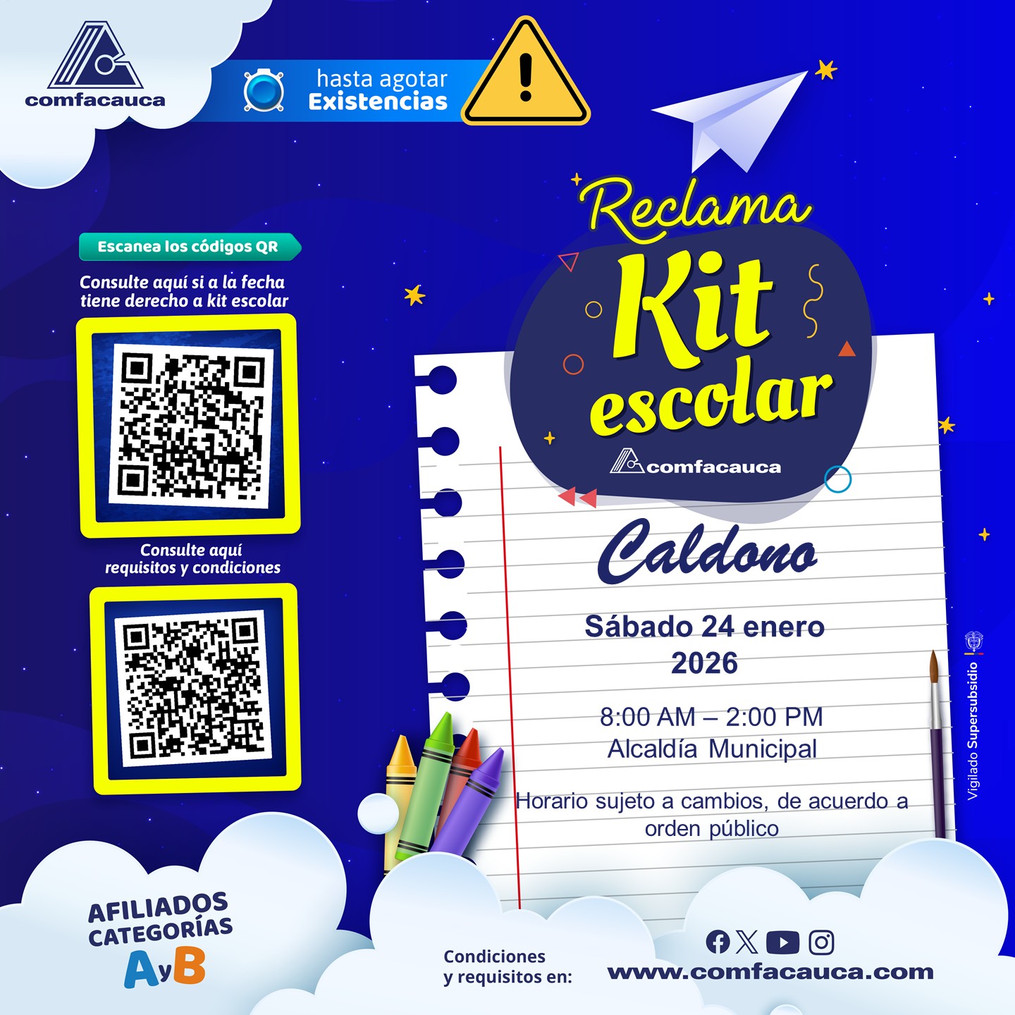 Afiliados de CALDONO Comfacauca llega a tu municipio con el Kit escolar🥳