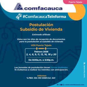 Todo lo que necesitas saber sobre subsidio de vivienda aquí: https://www.comfacauca.com/servicio/subsidios/?tab=menu-servicio-5#menu-servicio-5