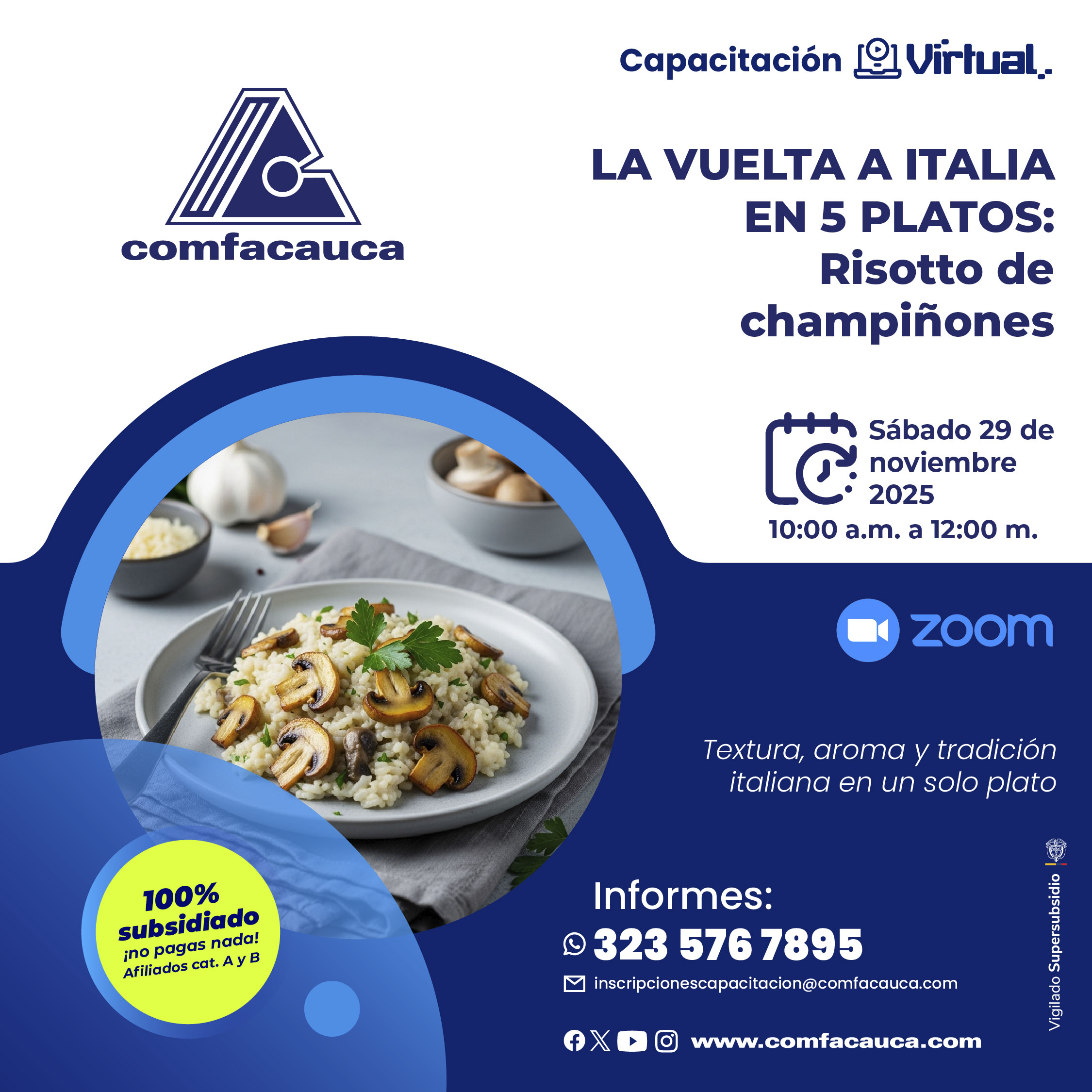 Taller virtual la vuelta a Italia en 5 Platos: Risotto de champiñones
