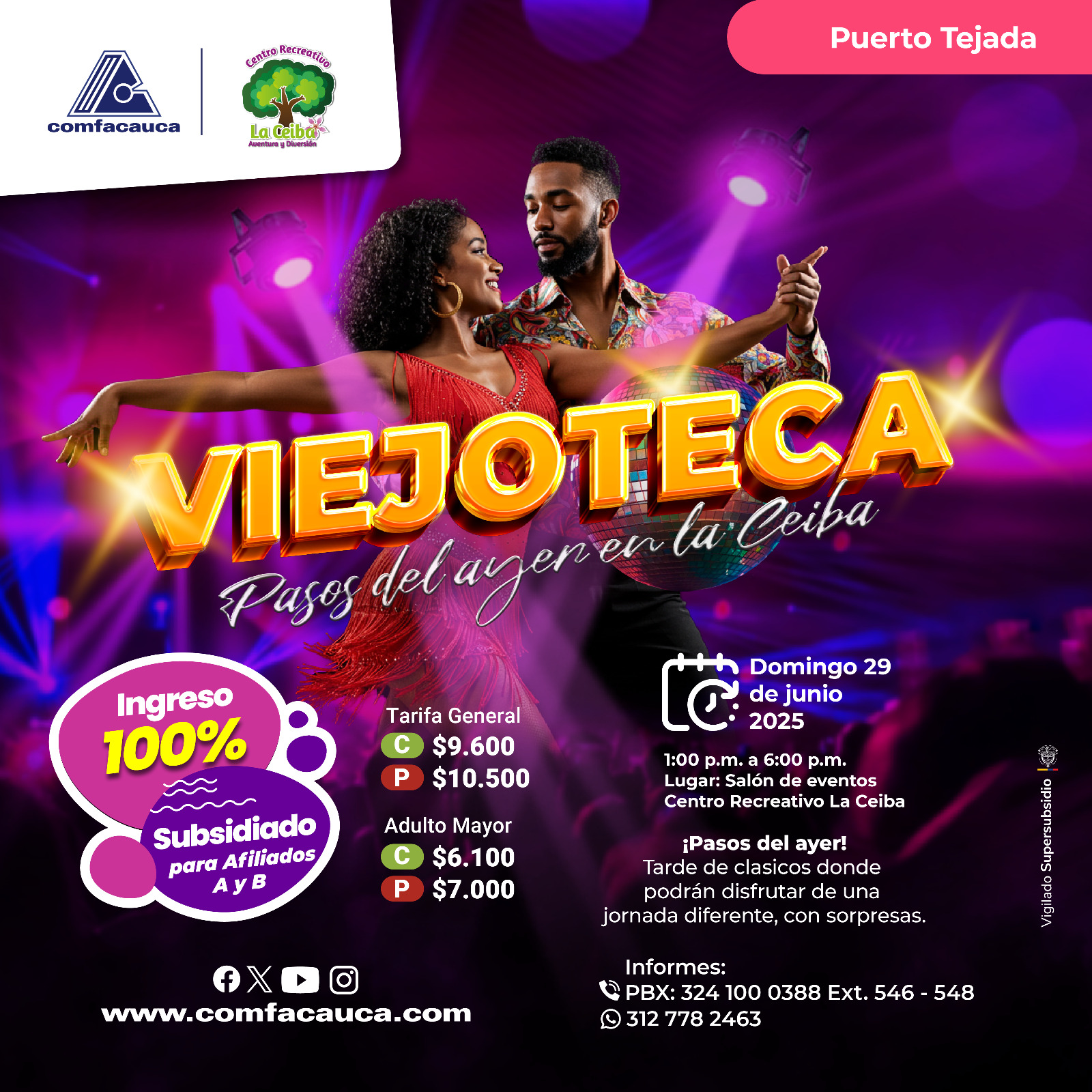Este domingo 29 de junio revive los mejores pasos del ayer en nuestra gran Viejoteca en el centro recreativo La Ceiba en Puerto Tejada.