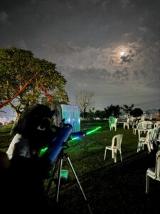 La noche se convirtió en una ventana a la magia del cielo nocturno en la que más de 200 niños y niñas, junto a sus familias, pudieron apreciar desde el centro recreativo Guayacanes, la grandeza del universo y el cosmos.
