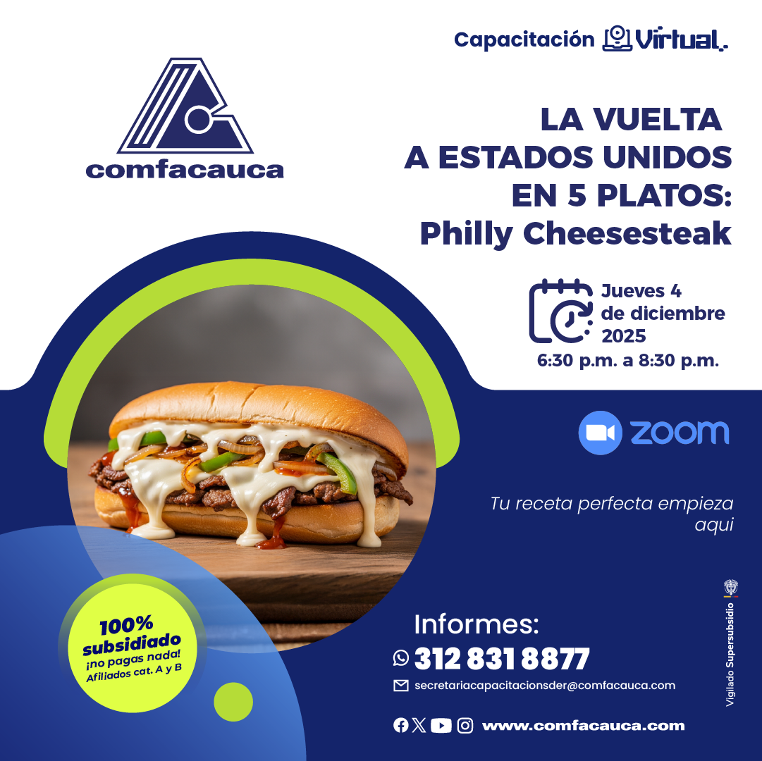 😋Aprende a preparar un Philly Cheesesteak clásico: carne de ternera finamente cortada, salteada con cebolla y pimentón, servida en un pan suave y lleno de sabor. Un taller ideal para amantes de los buenos sándwiches.
