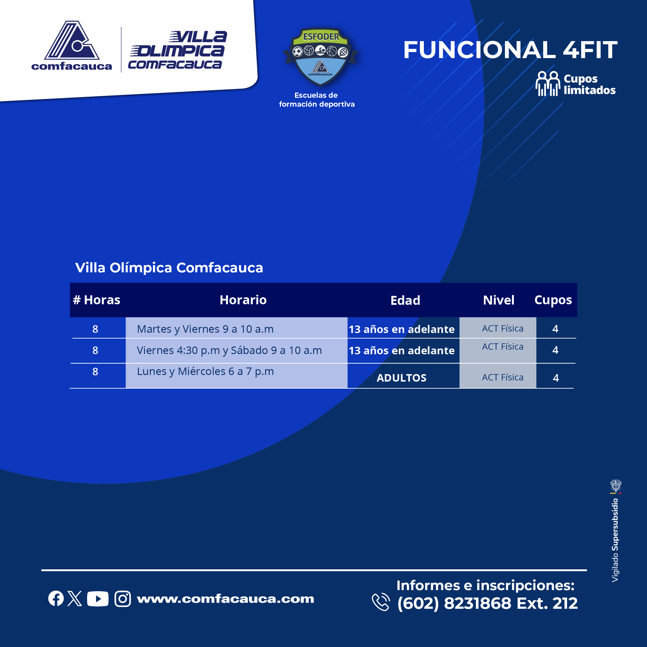 - Email: gymcomfacauca@comfacauca.com
