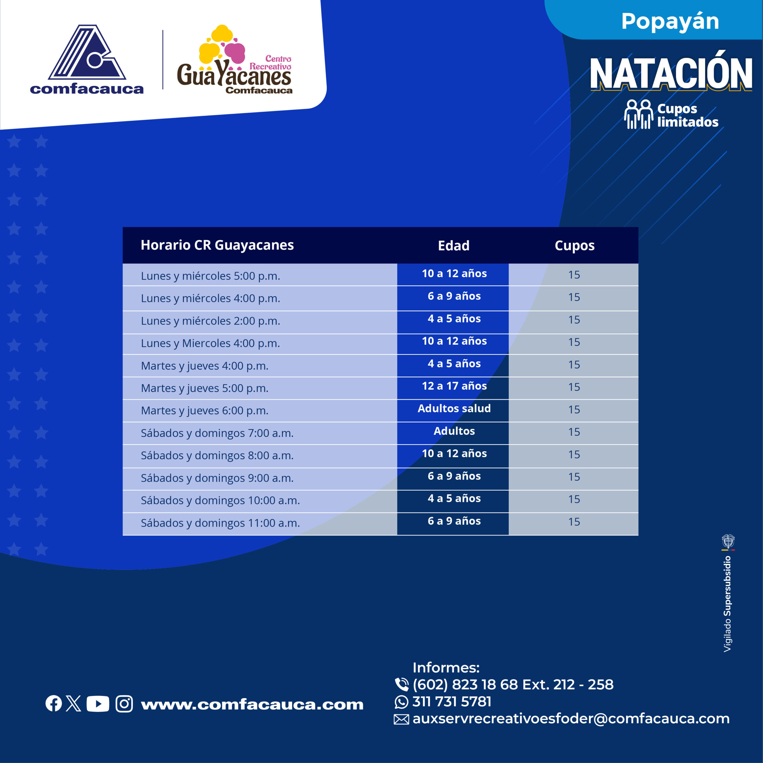 - Email: gymcomfacauca@comfacauca.com recepciongym@comfacauca.com