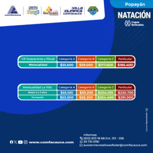 | Gimnasio Comfacauca | Categoría A | Categoría B | Categoría C | Particular |
