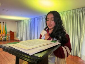 Las estudiantes Nicol Sevillano e Isabel Sofía Valencia, del grado décimo, compartieron su experiencia como parte del proyecto Emprendedores de Cultura y Paz, destacando el impacto que este tuvo en su formación personal y social: “este proyecto nos ayudó a ser más responsables, a confiar más en nosotros mismos y a trabajar en equipo. Aprendimos a entender a los demás, a comunicarnos y a expresar lo que sentimos”, señaló Nicol.